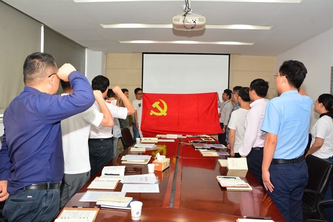 緊接著,開展“四重”活動?;顒忧肮拘姓耸虏繉iT從園區(qū)檔案室調(diào)取每一名黨員入黨志愿書,將內(nèi)容拍好發(fā)到每人,重溫入黨時的難忘經(jīng)歷。在劉建華書記的帶領(lǐng)下,右拳高擎,神情莊重,面對鮮紅的黨旗鄭重宣誓,抒發(fā)對黨的忠誠,踐行黨的宗旨,維護(hù)黨的形象和愛黨愛國情懷。