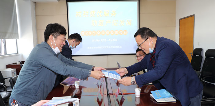 4月27日上午,正值第29個稅收宣傳月之際,宿遷經(jīng)濟開發(fā)區(qū)稅務局張森局長帶隊來園區(qū)開發(fā)公司宣傳調(diào)研。